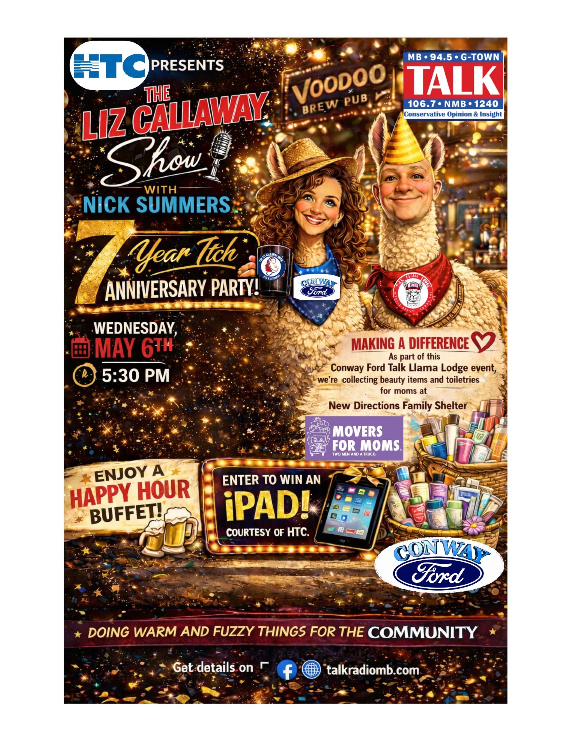 HTC presents The Liz Callaway Show with Nick Summers 7 Year Itch Anniversary Party — Wednesday, May 6th at 5:30 PM at Voodoo Brewing Company at Broadway at the Beach.