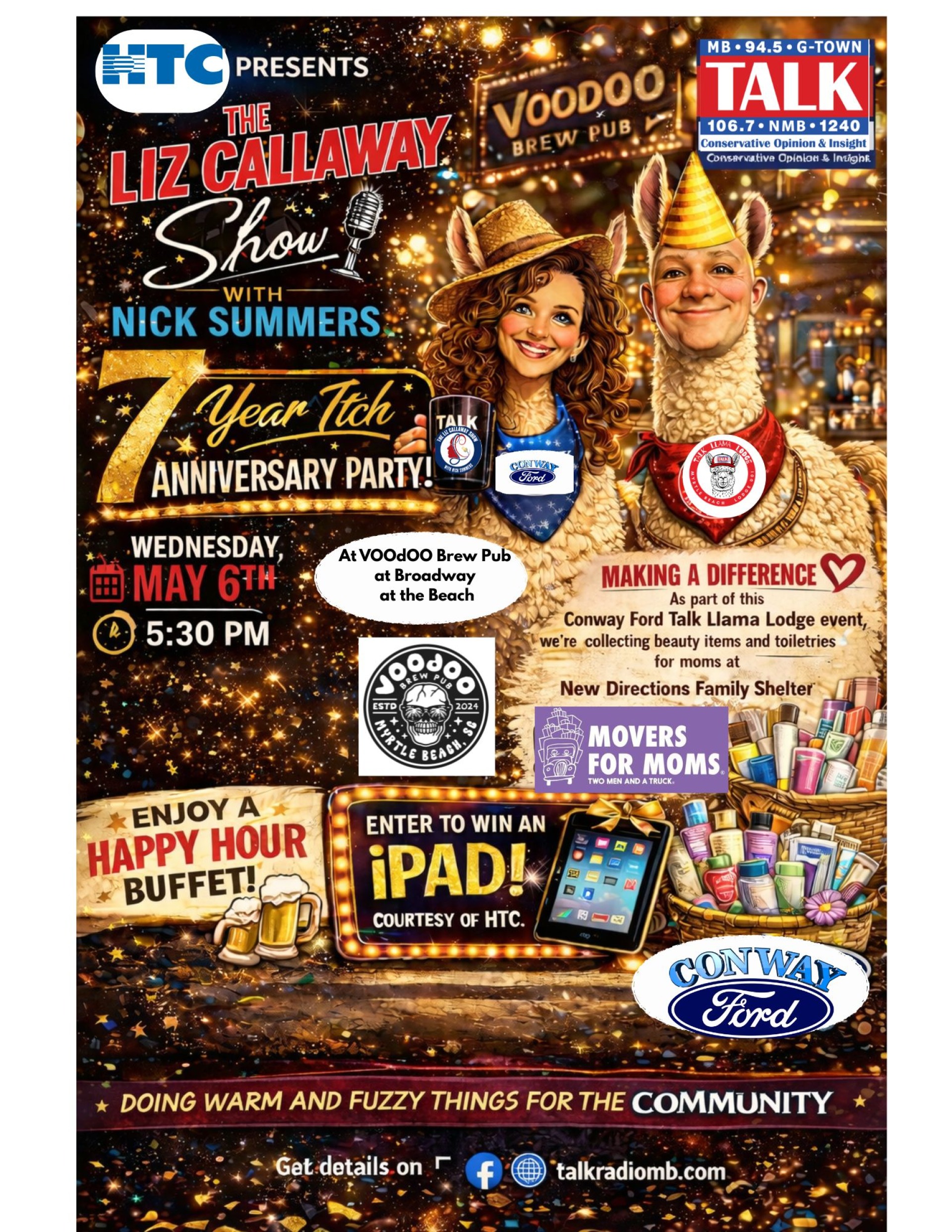 HTC presents The Liz Callaway Show with Nick Summers 7 Year Itch Anniversary Party — Wednesday, May 6th at 5:30 PM at Voodoo Brewing Company at Broadway at the Beach.