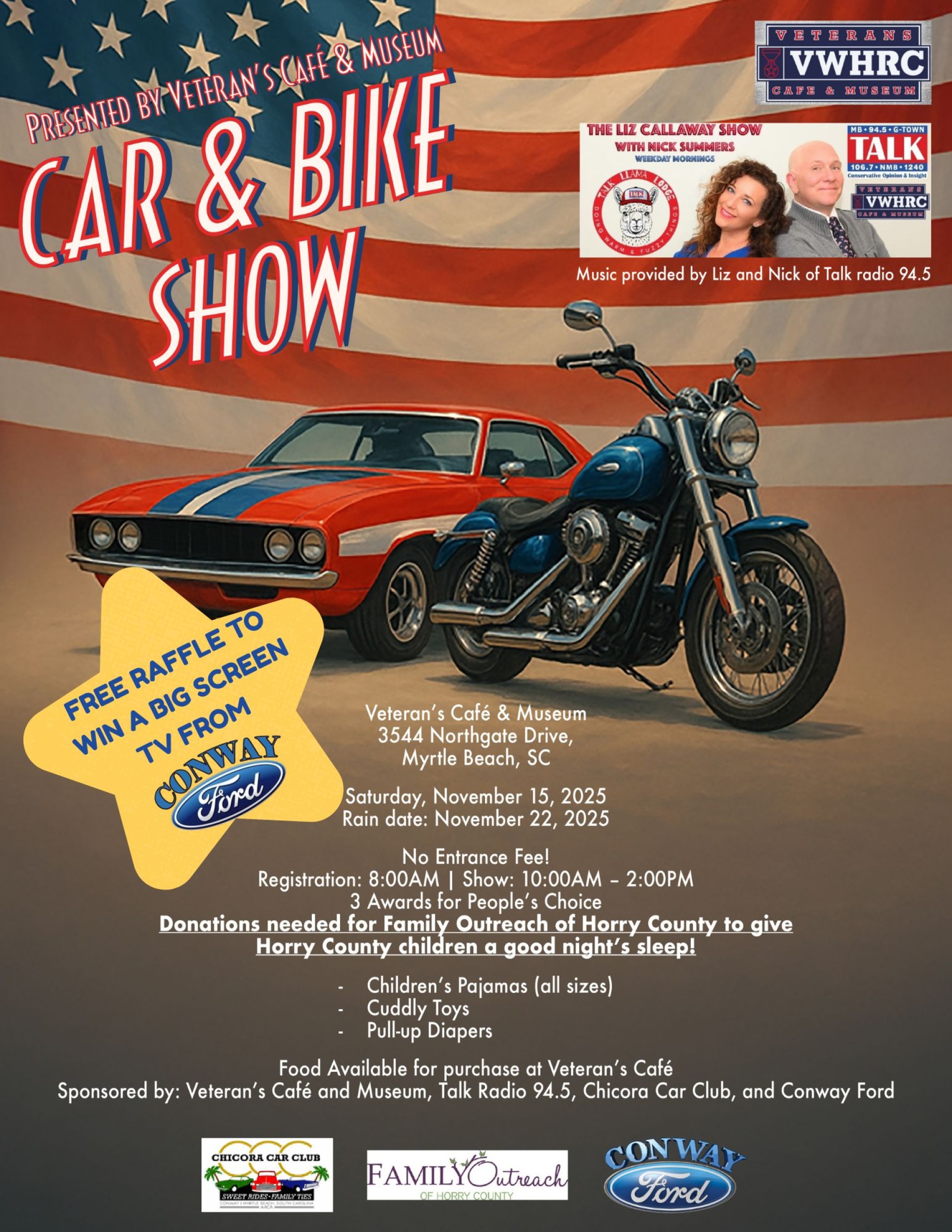 THE TALK LLAMA LODGE - CAR & BIKE SHOW - WIN A FREE TV FROM CONWAY FORD